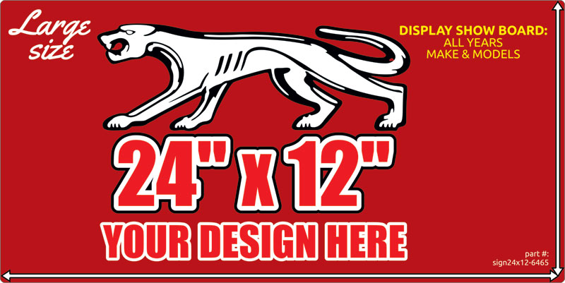 * Ford and Mercury branding will NOT be on the design due to licensing. We can however put a Cougar Cat in place to make it more unique! After placing your order, an email will be sent to you requesting a photo of your data plate or data sticker. We will then custom design your custom sign to match your vehicle. A proof will be sent to you for approval before any printing will occur.